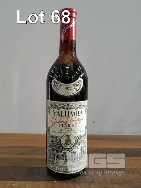 1972 YALUMBA GALWAY VINTAGE CLARET SINGLE 738ML CLARET BOTTLE, UNDER CORK. FILL LEVEL "MID SHOULDER". CAPSULE GOOD. BOTTLE & LABEL GOOD TO VERY GOOD.