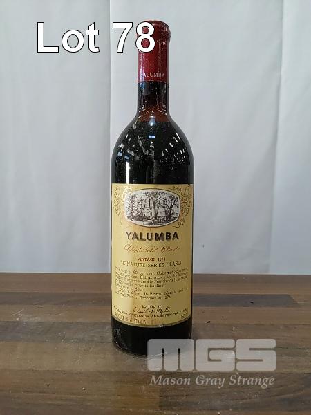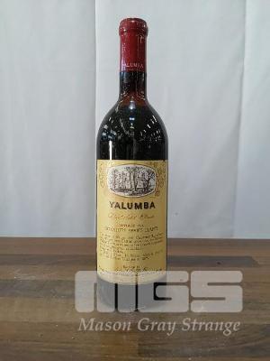 1974 YALUMBA SIGNATURE SERIES CLARET "CHRISTOBEL'S BLEND" BAROSSA CABERNET SAUVIGNON SHIRAZ. SINGLE 750ML CLARET BOTTLE, UNDER CORK. ** 60% BAROSSA CABERNET SAUVIGNON, 40% BAROSSA SHIRAZ ** ** WINE SHOWS: 16 GOLD, 7 SILVER & 2 TROPHIES ** FILL LEVEL "TOP SHOULDER". CAPSULE FAIR. BOTTLE FAIR. LABELS FAIR TO AVERAGE WITH DRIP STAINS.