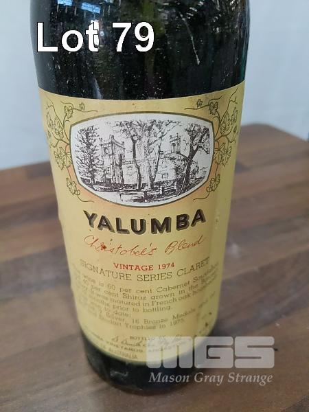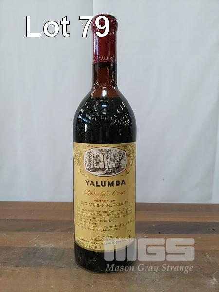 1974 YALUMBA SIGNATURE SERIES CLARET "CHRISTOBEL'S BLEND" BAROSSA CABERNET SAUVIGNON SHIRAZ. SINGLE 750ML CLARET BOTTLE, UNDER CORK. ** 60% BAROSSA CABERNET SAUVIGNON, 40% BAROSSA SHIRAZ ** ** WINE SHOWS: 16 GOLD, 7 SILVER & 2 TROPHIES ** FILL LEVEL "TOP SHOULDER". CAPSULE FAIR BUT PERFORATED ON TOP.. BOTTLE FAIR. LABELS FAIR TO AVERAGE WITH DRIP STAINS.
