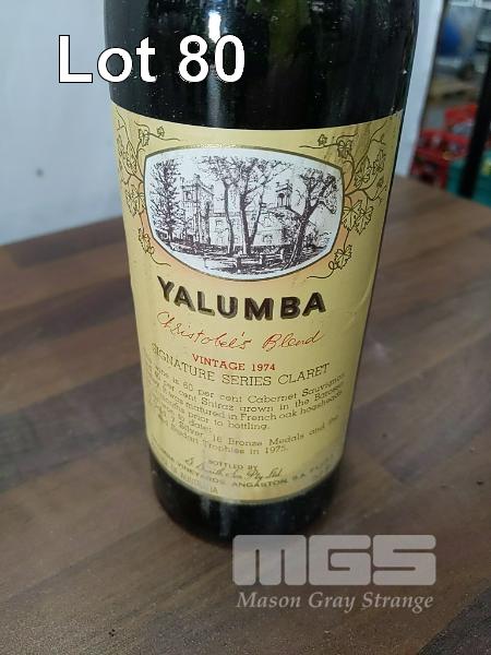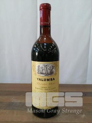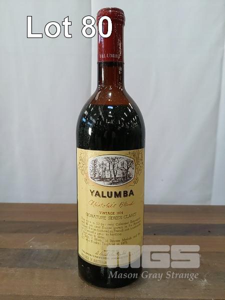 1974 YALUMBA SIGNATURE SERIES CLARET "CHRISTOBEL'S BLEND" BAROSSA CABERNET SAUVIGNON SHIRAZ. SINGLE 750ML CLARET BOTTLE, UNDER CORK. ** 60% BAROSSA CABERNET SAUVIGNON, 40% BAROSSA SHIRAZ ** ** WINE SHOWS: 16 GOLD, 7 SILVER & 2 TROPHIES ** FILL LEVEL "MID SHOULDER". CAPSULE PERFORATED ON TOP, WITH CRUST. BOTTLE FAIR. LABELS AVERAGE WITH DRIP STAINS.