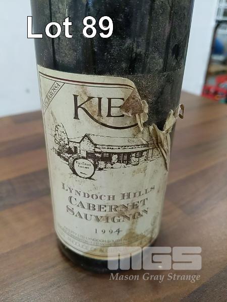1994 KIES LYNDOCH HILLS BAROSSA CABERNET SAUVIGNON. SINGLE 750ML CLARET BOTTLE, UNDER CORK. ** LABEL HAND ANNOTATED 1993 CHANGED TO 1994 * FILL LEVEL "VERY TOP SHOULDER" CAPSULE FAIR TO GOOD. BOTTLE FAIR. LABEL DAMAGED.