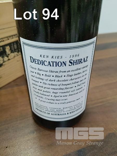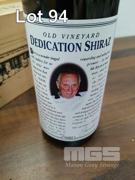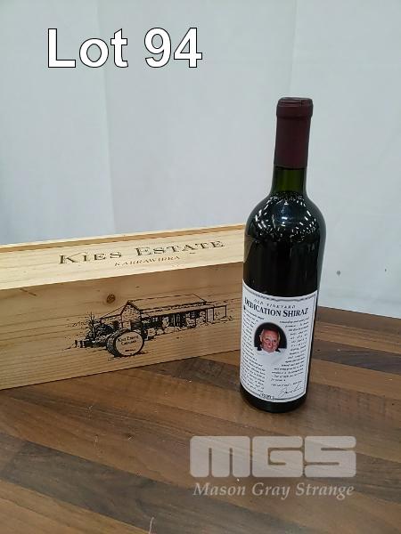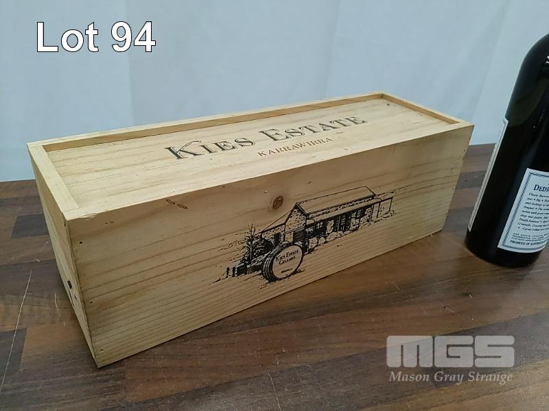 1996 KIES ESTATE "OLD VINEYARD DEDICATION" BAROSSA SHIRAZ. SINGLE 750ML CLARET BOTTLE, UNDER CORK WITH WOODEN SLIDING LID PRESENTATION BOX. FILL LEVEL "BASE OF NECK" CAPSULE GOOD. BOTTLE & LABELS VERY GOOD. PRESENTATION BOX GOOD.