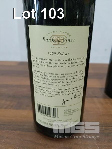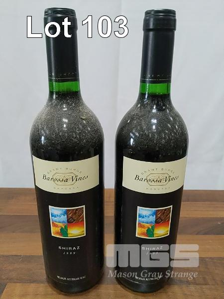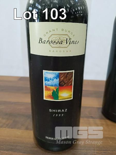 1999 GRANT BURGE "BAROSSA VINES" BAROSSA SHIRAZ. 2 X 750ML CLARET BOTTLES, UNDER CORK. FILL LEVELS BOTH "IN NECK". CAPSULES GOOD. BOTTLES & LABELS FAIR TO GOOD.