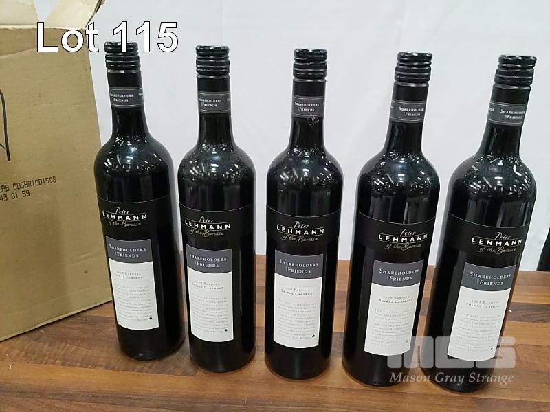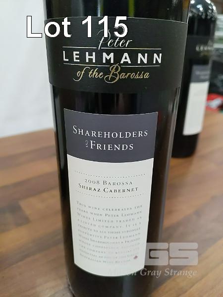 2008 PETER LEHMANN OF THE BAROSSA "SHAREHOLDERS AND FRIENDS" BAROSSA SHIRAZ CABERNET. PACK OF 5 X 750ML CLARET BOTTLES, UNDER SCREW CAP. FILL LEVELS ALL EXCELLENT. SCREW CAPS SOUND (ONE WITH IMPACT TOP RIM). BOX AVERAGE. BOTTLES & LABELS GOOD.