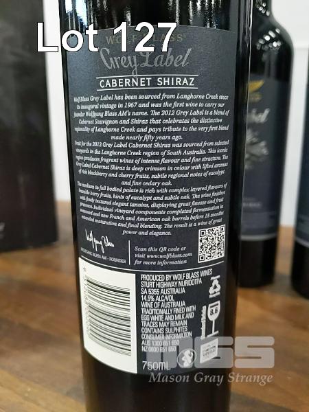 2012 WOLF BLASS "GREY LABEL" LANGHORNE CREEK CABERNET SHIRAZ. PACK OF 6 X 750ML CLARET BOTTLES, UNDER SCREW CAP. FILL LEVELS ALL "IN NECK". SCREW CAPS SOUND AND CLEAN. BOX GOOD. BOTTLES AND LABELS VERY GOOD.