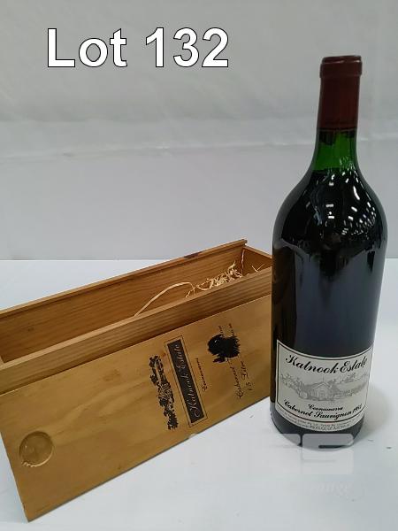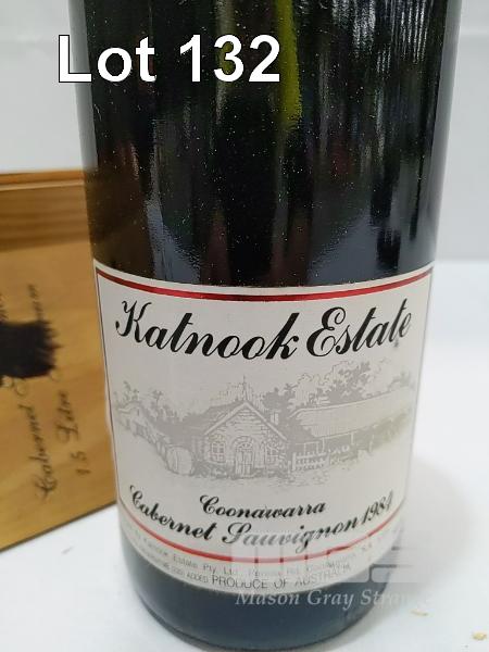 1984 KATNOOK ESTATE COONAWARRA CABERNET SAUVIGNON. SINGLE 1.5L MAGNUM, UNDER CORK IN SLIDING LID WOODEN PRESENTATION BOX. FILL LEVEL "VERY TOP SHOULDER". CAPSULE GOOD WITH NO INDICATION OF LEAKING. BOX FAIR. BOTTLE AND LABEL GOOD.