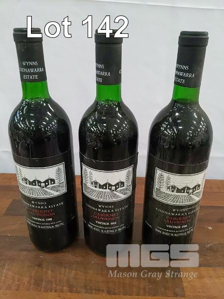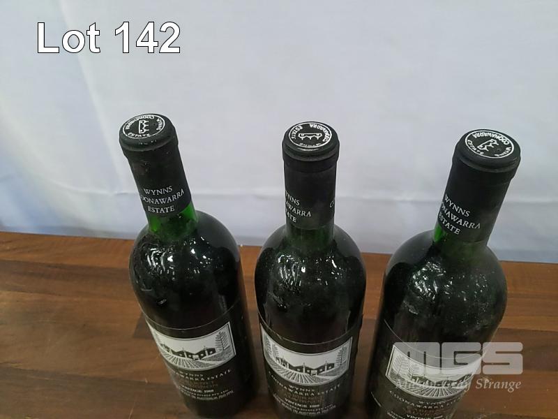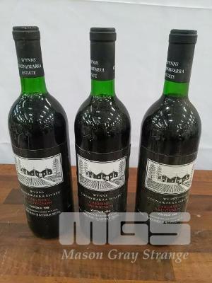 1988 WYNNS COONAWARRA ESTATE CABERNET SAUVIGNON. 3 X 750ML CLARET BOTTLE, UNDER CORK. * WYNNS BLACK LABEL CABERNET SAUVIGNON * FILL LEVELS "VERY TOP SHOULDER" TO "BASE OF NECK". CAPSULES FAIR TO GOOD. BOTTLES GOOD. LABELS FAIR TO AVERAGE.