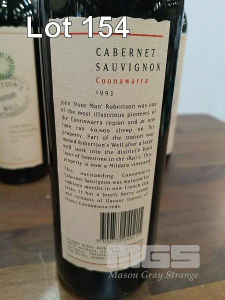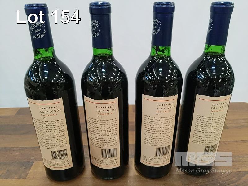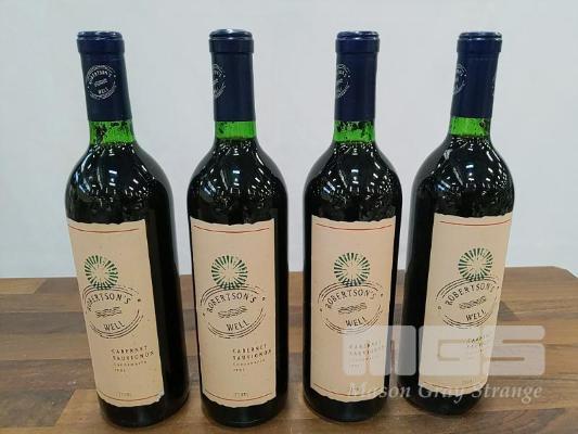 1993 MILDARA "ROBERTSON'S WELL" COONAWARRA CABERNET SAUVIGNON. 4 X 750ML CLARET BOTTLES, UNDER CORK. FILL LEVELS ALL "IN NECK". CAPSULES SOUND WITH SLIGHT SCUFFING ON TOPS. BOTTLES & LABELS GOOD. ONE FRONT LABEL HAS A NICK OUT OF ONE CORNER.