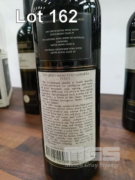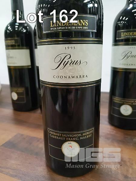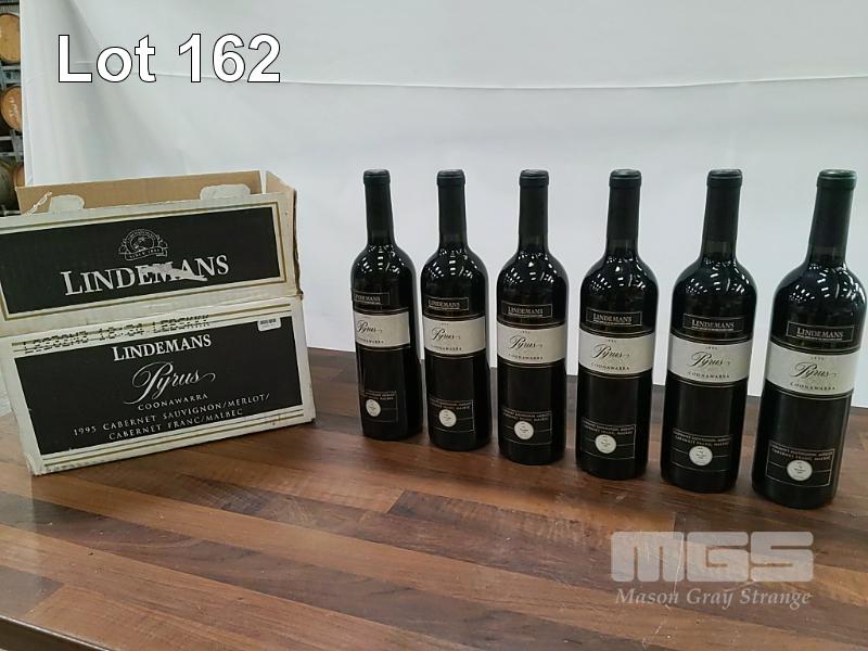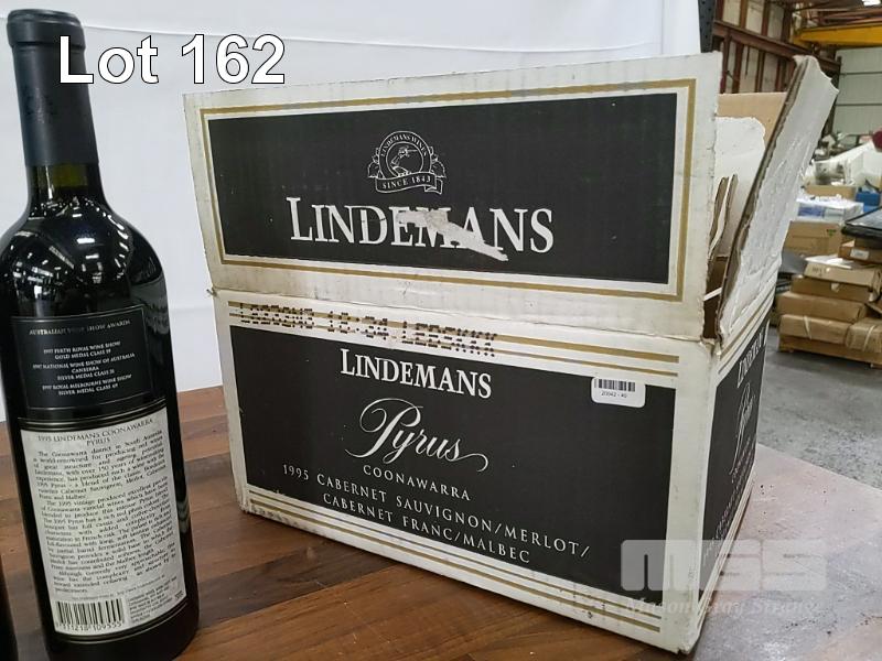 1995 LINDEMANS "PYRUS" COONAWARRA CABERNET SAUVIGNON, MERLOT, CABERNET FRANC, MALBEC. PACK OF 6 X 750ML CLARET BOTTLES , UNDER CORK. FILL LEVELS ALL "BASE OF NECK". CAPSULES GOOD. BOX FAIR. BOTTLES & LABELS GOOD.