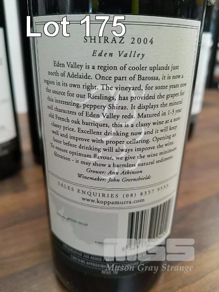 2004 KOPPAMURRA EDEN VALLEY SHIRAZ. 5 X 750ML CLARET BOTTLES, UNDER SCREW CAP. FILL LEVELS EXCELLENT. SCREW CAPS ALL SOUND. BOTTLES & LABELS FAIR TO GOOD.