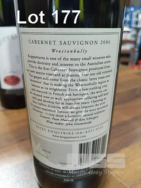 2006 KOPPAMURRA WRATTONBULLY CABERNET SAUVIGNON. 6 X 750ML CLARET BOTTLES, UNDER SCREW CAP. FILL LEVELS EXCELLENT. SCREW CAPS ALL SOUND AND CLEAN. BOTTLES & LABELS EXCELLENT.