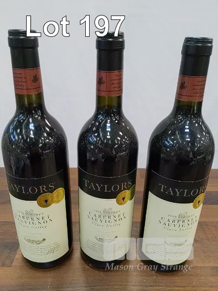 2000 TAYLORS CLARE VALLEY CABERNET SAUVIGNON. 3 X 750ML CLARET BOTTLES, UNDER CORK. FILL LEVELS ALL "IN NECK". CAPSULES GOOD. BOTTLES & LABELS GOOD.