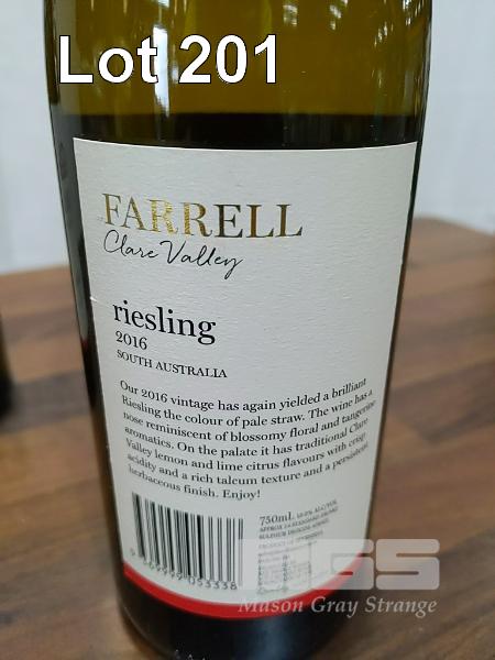 2016 FARRELL CLARE VALLEY RIESLING. 2 X 750ML RIESLING BOTTLES UNDER SCREW CAPS. FILL LEVELS EXCELLENT. CAPS, BOTTLES & LABELS GOOD.