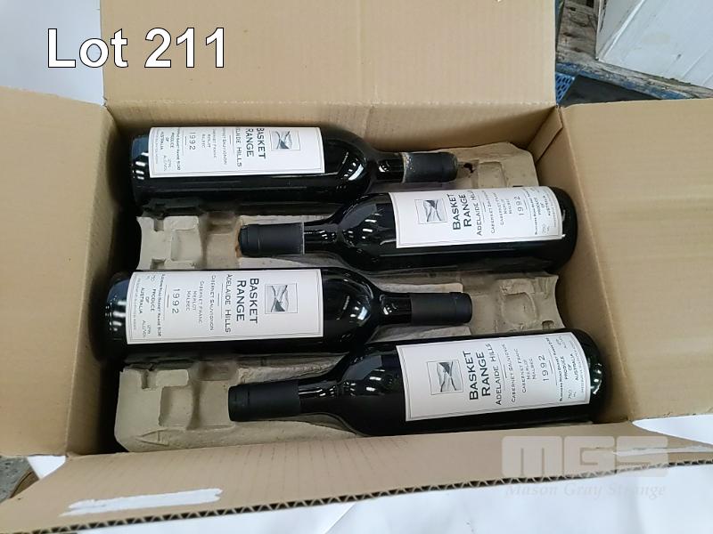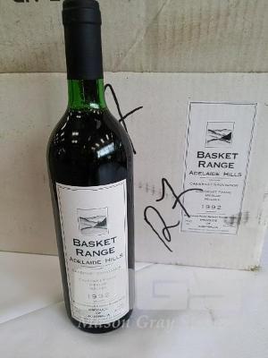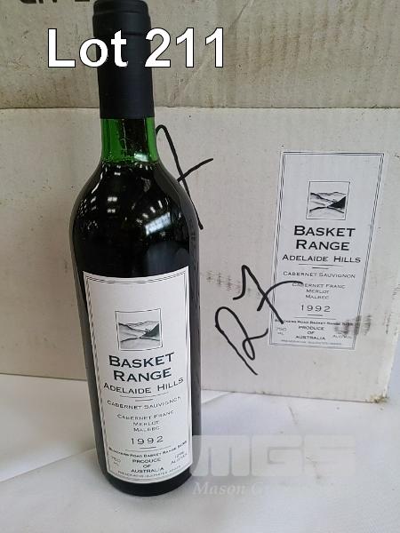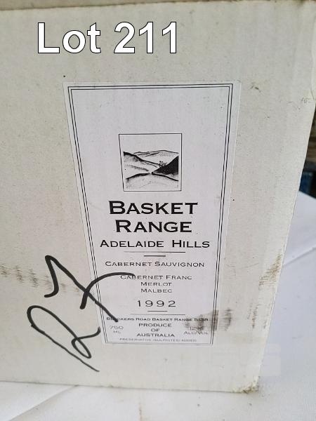 1992 BASKET RANGE ADELAIDE HILLS CABERNET SAUVIGNON/CABERNET FRANC/MERLOT/MALBEC BLEND. CASE OF 12 x 750ML CLARET BOTTLES. UNDER CORK. FILL LEVELS UPPER SHOULDER TO TOP SHOULDER. CAPSULE CONDITION POOR TO GOOD. CASE IN GOOD CONDITION. BOTTLES CLEAN. EVIDENCE OF SLIGHT SEEPAGE.