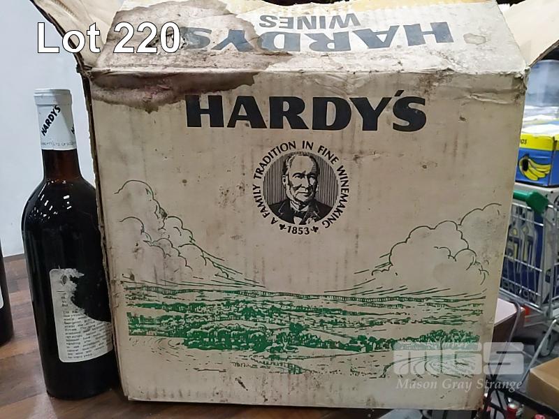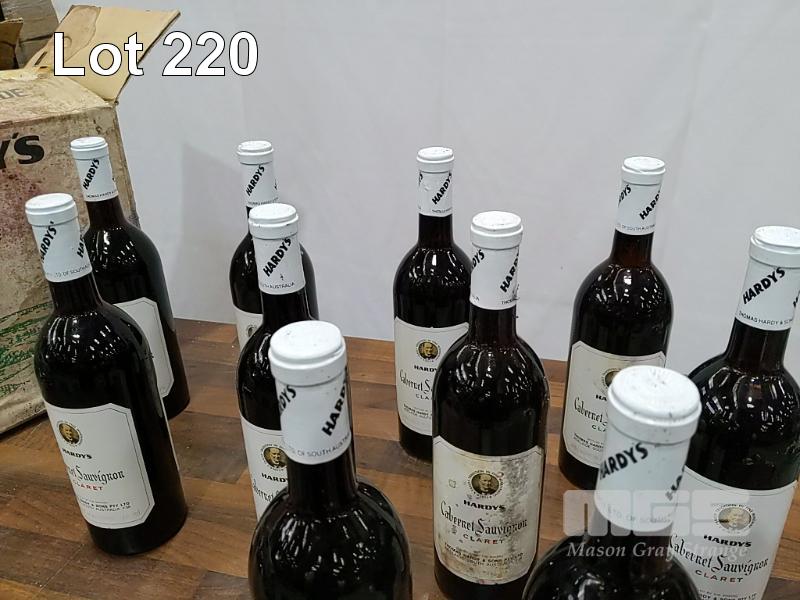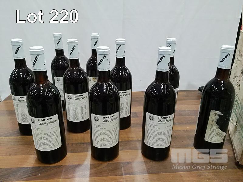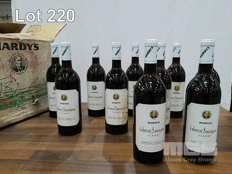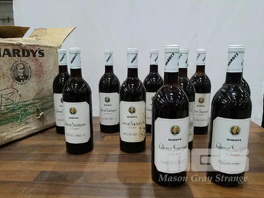 1975 HARDY'S "CLARET" CABERNET SAUVIGNON - BIN No. D390. CASE OF 10 X 750ML CLARET BOTTLES, UNDER CORK. * DISTRICT: KEPPOCH * * BOTTLED 21 MARCH 1977 * FILL LEVELS "TOP SHOULDER" TO "VERY TOP SHOULDER'. CAPSULES GOOD. BOX POOR. BOTTLES GOOD. LABELS VERY GOOD TO POOR.
