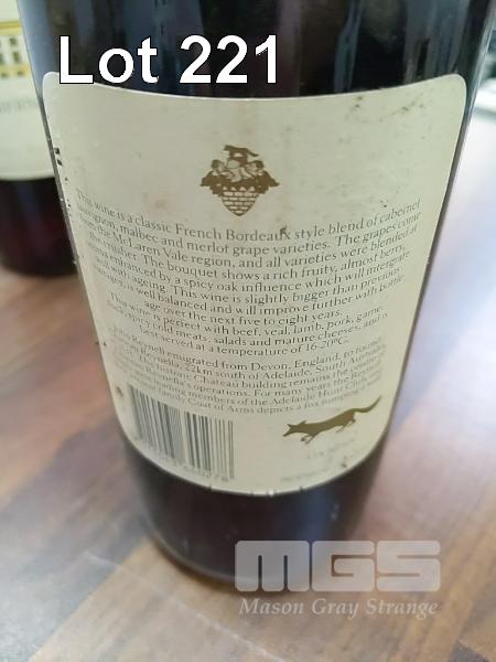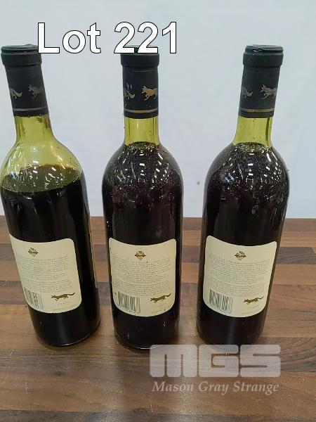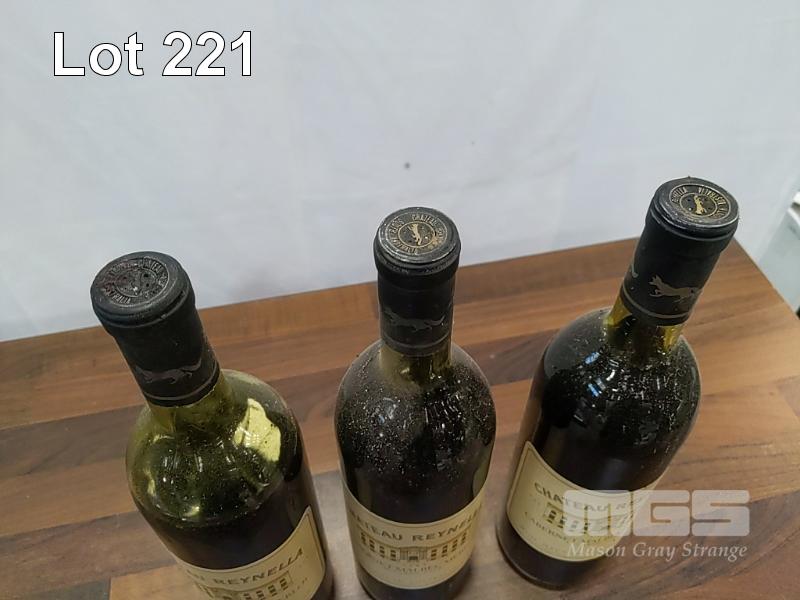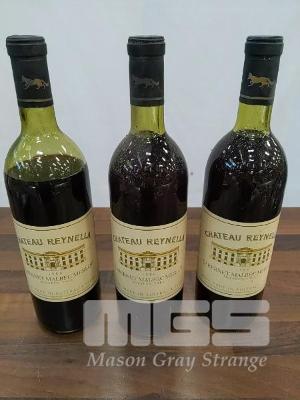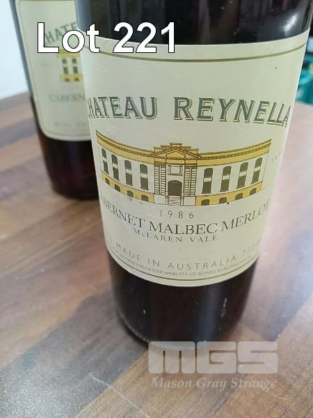 1986 CHATEAU REYNELLA MCLAREN VALE CABERNET MALBEC MERLOT. 3 X 750ML CLARET BOTTLES, UNDER CORK. FILL LEVELS TWO "VERY TOP SHOULDER". ONE LOW SHOULDER. CAPSULES, TWO GOOD, ONE HAS CRUST. BOTTLES GOOD. LABELS GOOD ON TWO. ONE FRONT LABEL STAINED.