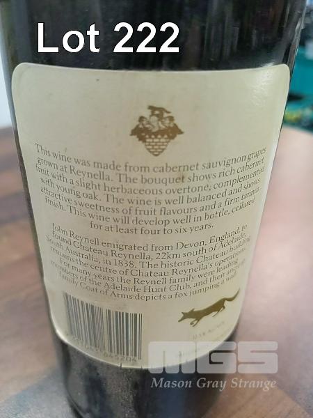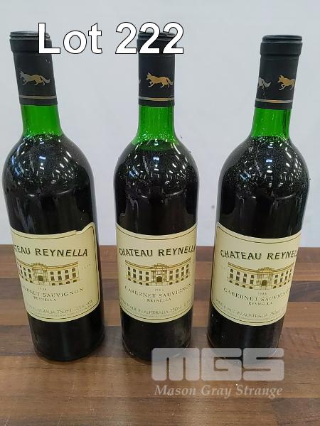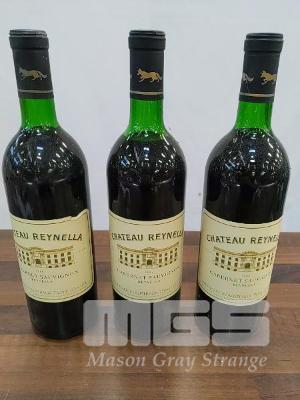 1986 CHATEAU REYNELLA "REYNELLA" CABERNET SAUVIGNON. 3 X 750ML CLARET BOTTLES, UNDER CORK. * WINE MADE FROM CABERNET SAUVIGNON GRAPES GROWN AT REYNELLA * FILL LEVELS "TOP SHOULDER" TO "BASE OF NECK". CAPSULES GOOD. BOTTLES & LABELS GOOD.