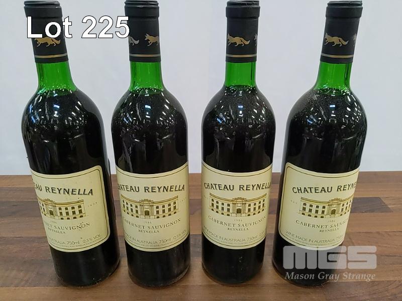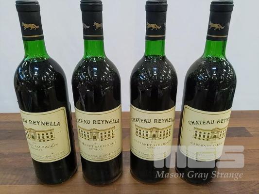 1986 CHATEAU REYNELLA "REYNELLA" CABERNET SAUVIGNON. 4 X 750ML CLARET BOTTLES, UNDER CORK. * WINE MADE FROM CABERNET SAUVIGNON GRAPES GROWN AT REYNELLA * FILL LEVELS "VERY TOP SHOULDER" TO "BASE OF NECK". CAPSULES GOOD. BOTTLES & LABELS GOOD.