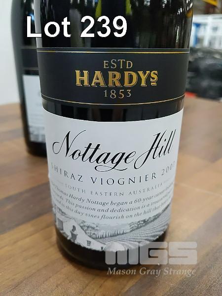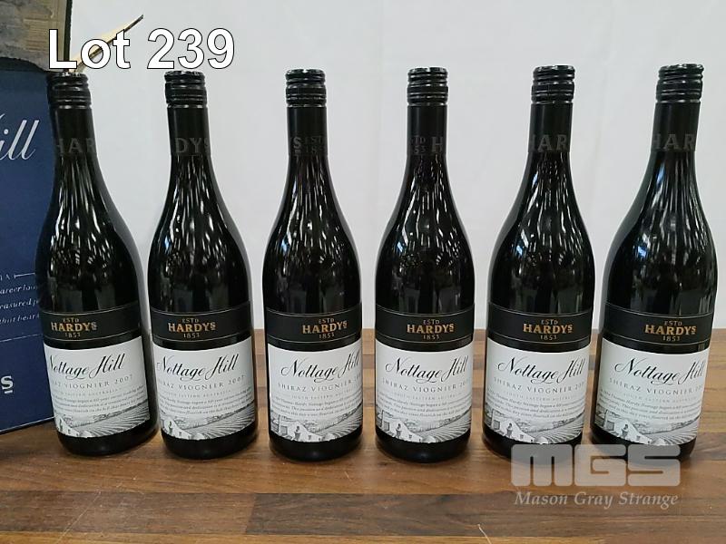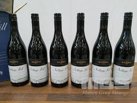 2007 HARDYS "NOTTAGE HILL" SHIRAZ VOIGNIER. PACK OF 6 X 750ML BURGUNDY BOTTLES, UNDER SCREW CAP. FILL LEVELS ALL EXCELLENT. SCREW CAPS ALL SOUND. BOX FAIR. BOTTLES & LABELS VERY GOOD.