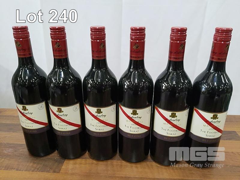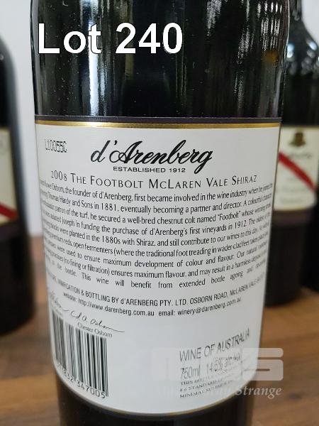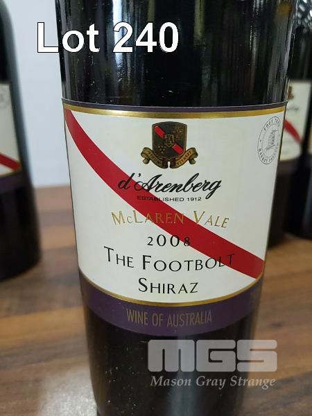 2008 D'ARENBERG "THE FOOTBOLT" MCLAREN VALE SHIRAZ. 6 X 750ML CLARET BOTTLES, UNDER SCREW CAP. SCREW CAPS ALL SOUND AND CLEAN. FILL LEVELS EXCELLENT. BOTTLES & LABELS GOOD.