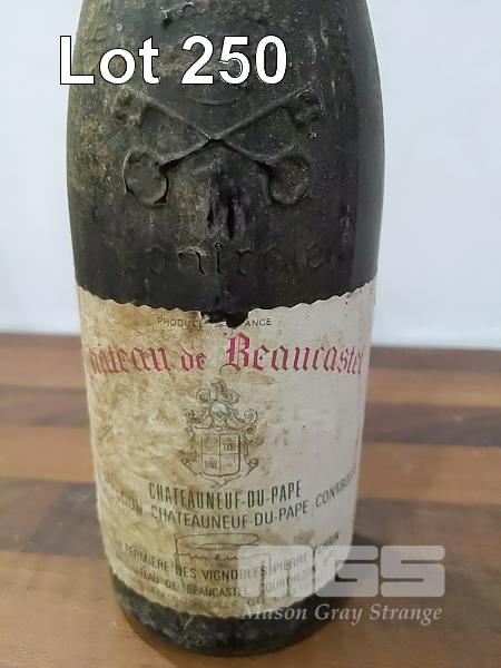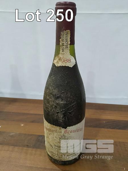 1988 CHATEAU DE BEAUCASTEL- CHATEAUNEUF-DU-PAPE - PIERRE PERRIN. SINGLE 750ML BOTTLE. * WINE FROM THE RHONE, FRANCE * * APPELLATION CHATEAUNEUF-DU-PAPE CONTROLEE * FILL LEVEL "1.5CM". CAPSULE AVERAGE. BOTTLE GRIMY. LABELS AVERAGE TO POOR.