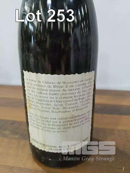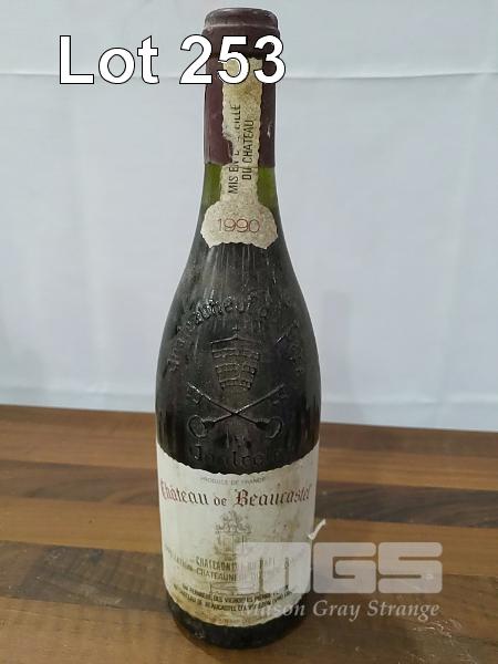 1990 CHATEAU DE BEAUCASTEL- CHATEAUNEUF-DU-PAPE - PIERRE PERRIN. SINGLE 750ML BOTTLE. * WINE FROM THE RHONE, FRANCE * * APPELLATION CHATEAUNEUF-DU-PAPE CONTROLEE * FILL LEVEL "1.5CM". CAPSULE AVERAGE. BOTTLE GRIMY. LABELS AVERAGE TO POOR.