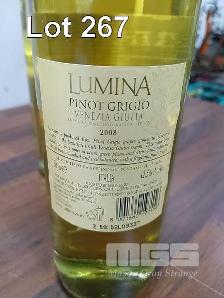 2008 RUFFINO "LUMINA" VENEZIA GIULIA PINOT GRGIO PACK OF 6 X 750ML CLARET BOTTLES, UNDER SCREW CAP. FILL LEVELS EXCELLENT. SCREW CAPS ALL SOUND & CLEAN. BOX GOOD. BOTTLES & LABELS GOOD TO VERY GOOD.