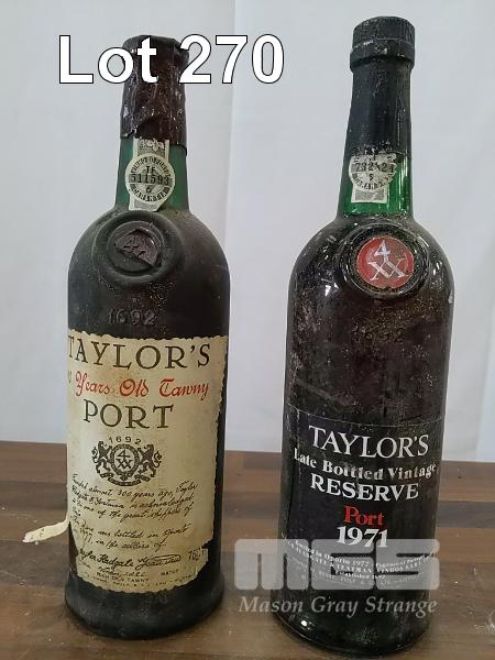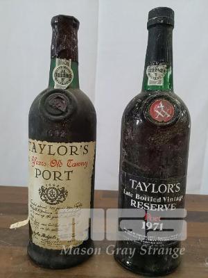 TWO BOTTLES OF TAYLOR'S (PORTUGUESE) "4XX" BRAND PORT. COMPRISING. 1 X TAYLOR'S "10 YEARS OLD TAWNEY" PORT. 75CL BOTTLE, WAX TOP. 1 X 1971 TAYLOR'S " LATE BOTTLED VINTAGE RESERVE" PORT. 750ML BOTTLE, UNDER CORK STOPPER. ** PORT WINES FROM OPORTO & DOURO VALLEY PORTUGAL ** ** TAYLOR'S PORT HOUSE FOUNDED 1692 *" BOTTLES & LABELS AVERAGE TO FAIR.