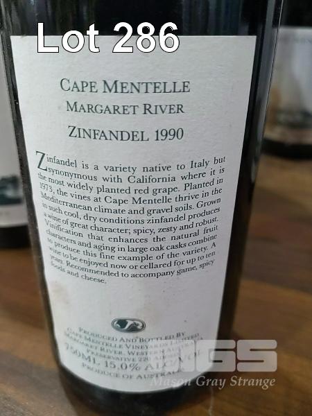 1990 CAPE MENTELLE MARGARET RIVER ZINFANDEL. 13 X 750ML CLARET BOTTLES, UNDER CORK. FILL LEVELS "BASE OF NECK" TO "IN NECK". CAPSULES GOOD. BOTTLES FAIR. LABELS FAIR TO POOR.