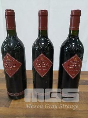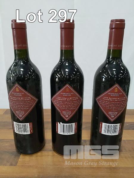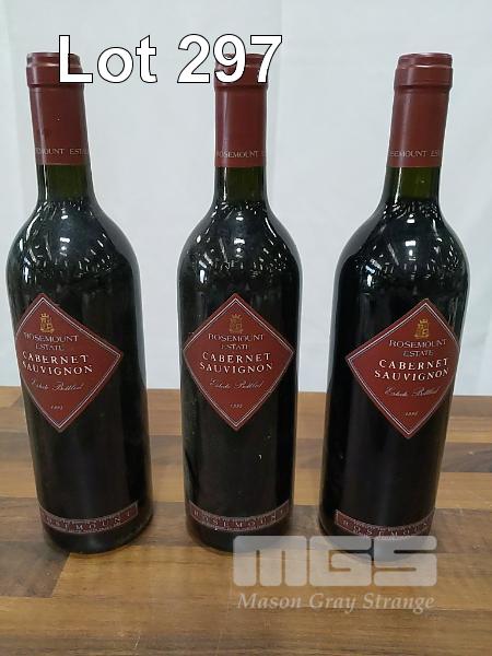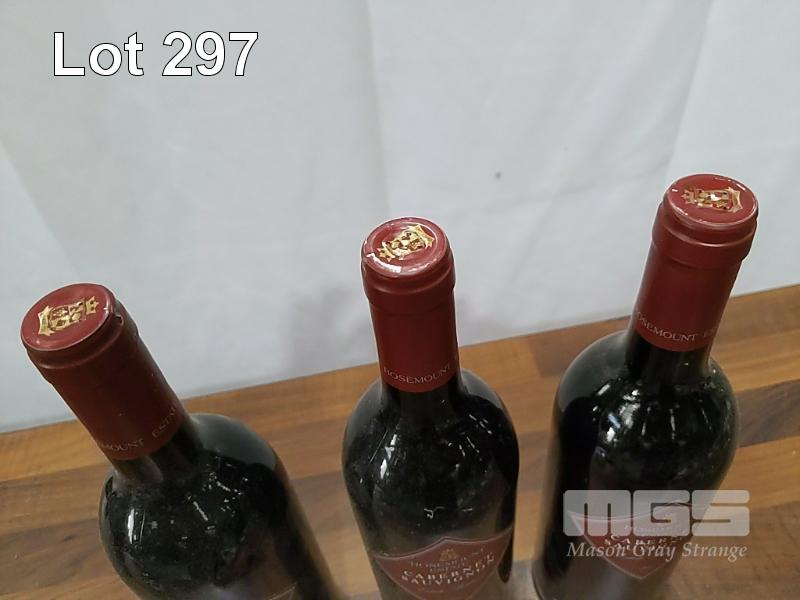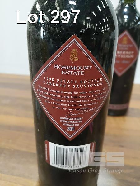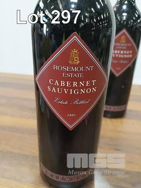 1995 ROSEMOUNT ESTATE "ESTATE BOTTLED" CABERNET SAUVIGNON. 3 X 750ML CLARET BOTTLES, UNDER CORK. FILL LEVELS ALL "BASE OF NECK". CAPSULES GOOD. BOTTLES AND LABELS FAIR, ONE BACK LABEL GATHERED ON EDGE.