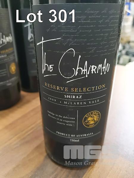 2009 DAL BROI "THE CHAIRMAN" RESERVE SELECTION MCLAREN VALE SHIRAZ. 6 X 750ML CLARET BOTTLES, UNDER SCREW CAP. * DAL BROI FAMILY WINES NSW * FILL LEVELS EXCELLENT. CAPSULES ALL SOUND. BOTTLES & LABELS GOOD TO VERY GOOD. ONE FRONT LABEL GATHERED.