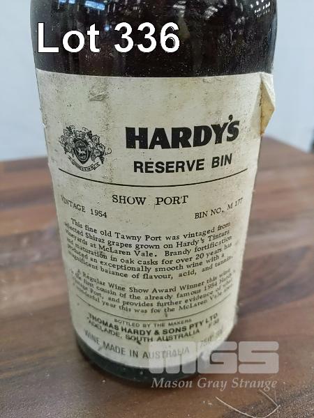 1954 HARDY'S RESERVE BIN "SHOW PORT" TAWNY PORT - BIN NO. M177. SINGLE 750ML PORT BOTTLE, UNDER CORK STOPPER. LEAD CAPSULE FAIR, PAINT OFF ONE EDGE. BOTTLE & LABEL FAIR.
