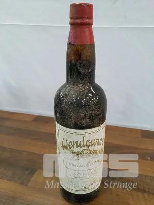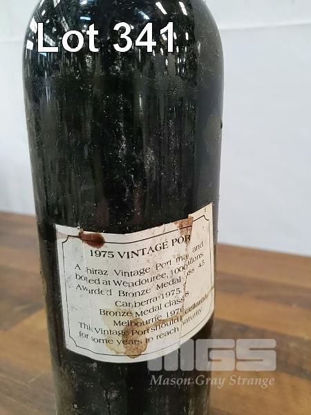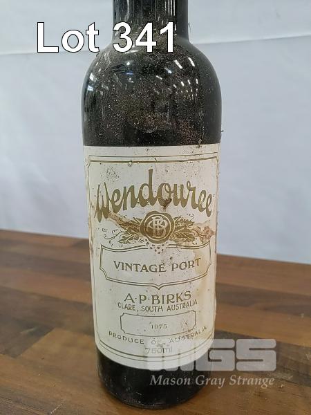 1975 WENDOUREE VINTAGE PORT. SINGLE 750ML PORT BOTTLE, UNDER CORK. CAPSULE FAIR TO AVERAGE. BOTTLE HAS CELLAR GRIME. LABELS AVERAGE TO POOR.
