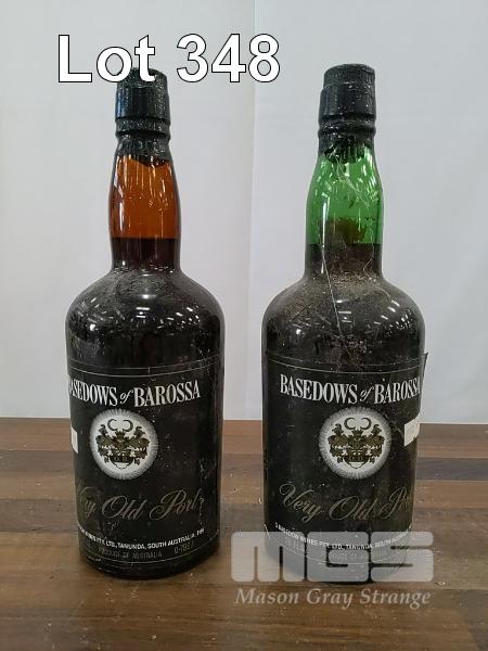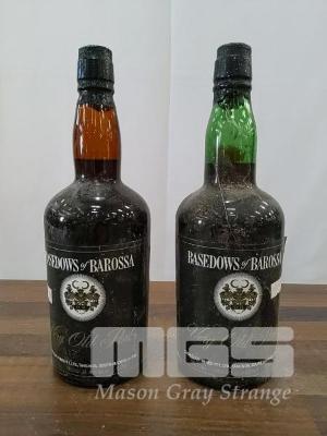 BASEDOWS OF BAROSSA "VERY OLD PORT". 2 X "26 FL OZ" PORT BOTTLES, UNDER CORK STOPPERS. CAPSULES, BOTTLES & LABELS FAIR TO AVERAGE.
