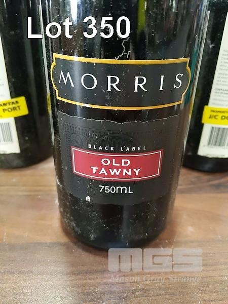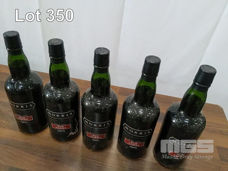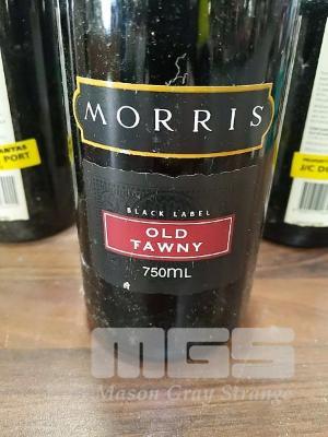 MORRIS "BLACK LABEL" OLD TAWNY. 5 X 750ML PORT BOTTLES, UNDER CORK STOPPER. CAPSULES, BOTTLES & LABEL AVERAGE TO GOOD.