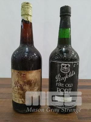 TWO BOTTLES OF PENFOLDS TAWNY PORT COMPRISING 1 X PENFOLDS OLD TAWNY PORT, "NET 1 PINT 6 FL OZ". 1 X PENFOLDS FINE OLD PORT - AGED TAWNY - BOTTLE No. 3995, 750ML. CONDITION OF BOTH AVERAGE TO POOR.