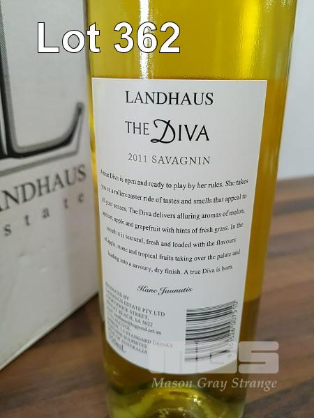 2011 LANDHAUS "THE DIVA" SAVIGNIN. CASE OF 12 X 750ML CLARET BOTTLES, UNDER SCREW CAP. FILL LEVELS EXCELLENT. BOX GOOD. CAPS, BOTTLES & LABELS VERY GOOD.