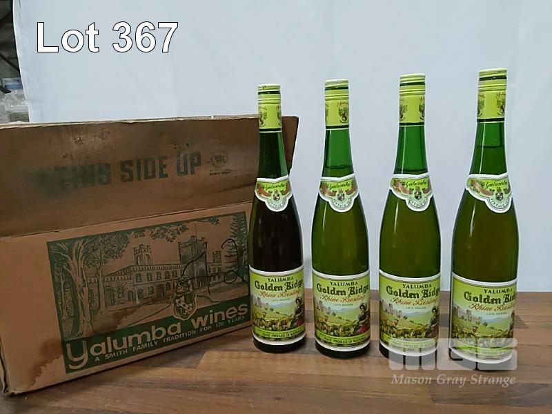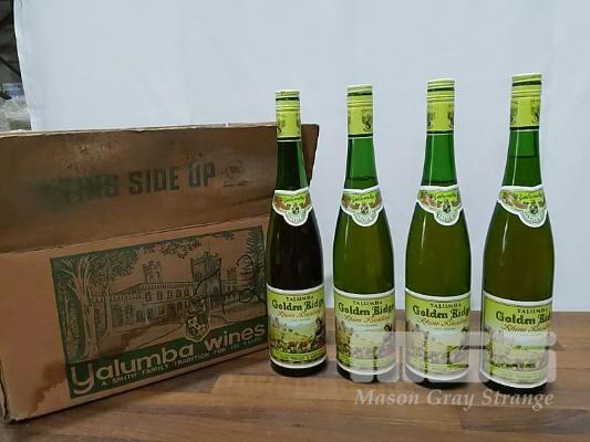 1973 YALUMBA "GOLDEN RIDGE" RHINE RIESLING - LATE PICKING. 4 X 750ML RIESLING BOTTLES, UNDER SCREW CAP. WITH ORIGINAL CARTON. ** 1979s WINE BOTTLED UNDER SCREW CAP ** FILL LEVELS VARY "ABOUT 40MM". CASE, CAPS, BOTTLE & LABELS FAIR TO GOOD. SOME KNOCKS & SCUFFS.