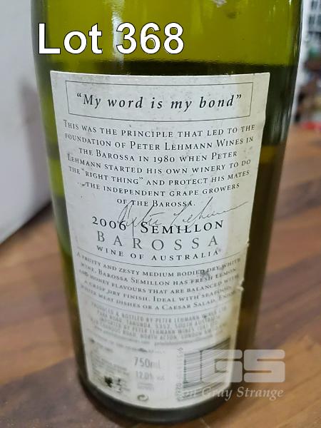 2006 PETER LEHMAN "OF THE BAROSSA" BAROSSA SEMILLON. CASE OF 12 X 750ML PUNTED BURGUNDY BOTTLES, UNDER SCREW CAP. FILL LEVELS EXCELLENT. SCREW CAPS SOUND. BOTTLES FAIR. LABELS VERY POOR. ALL DAMAGED TO SOME EXTENT.