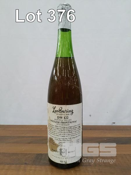 1979 LEO BURING RESERVE BIN BAROSSA VALLEY SPATLESE FRONTIGNAC - DW 122 SINGLE 750ML RIESLING BOTTLE, UNDER CORK. FILL LEVEL "5CM". CAPSULE FAIR. BOTTLE & LABELS FAIR TO AVERAGE, DRIP STAIN ON LABEL.