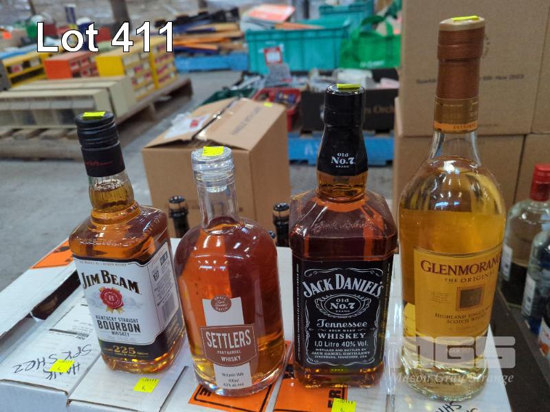 4 BOTTLES WHISKEY, JACK DANIELS, 1 LITRE, JIM BEAM 700ml, SETTLERS PORT BARREL 700ml & GLENMORANGIE, 700ml