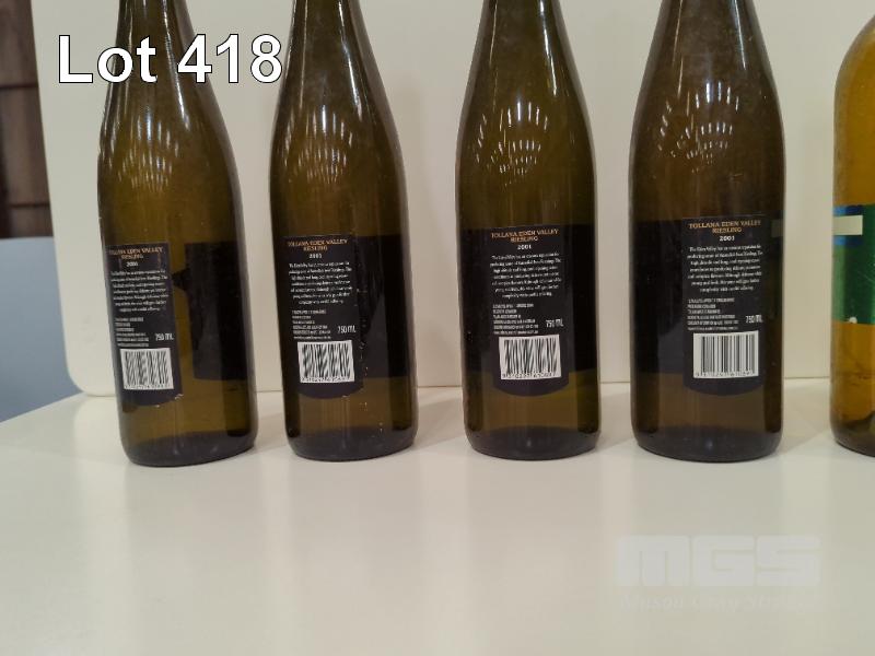 12 X ASSORTED AGED WHITE AND SPARKLING WINES. INCLUDES 4 X 2001 TOLLANA EDEN VALLEY RIESLING. 1 X BEN EAN MOSELLE. 2 X JACOB'S CREEK CHARDONNAY PINOT NOIR SPARKLING WINE. ETC
