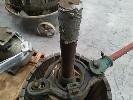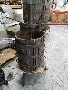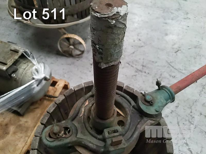MANUAL WINE GRAPE BASKET PRESS. CAGE DIAMETER 53CM. HEIGHT 70CM. BASE, THREADED SHAFT, RATCHET AND LEVER. 2 X CAGE SECTIONS. 2 X SEMI-CIRCLE HEADERS. 5 X LOCKING PINS.