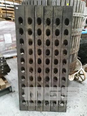 ANTIQUE TRADITIONAL METHODE CHAMPENOISE RIDDLING RACK. 60 BOTTLE PLACES, 730 X 1500 MM (W X H). DARK STAINED TIMBER. * PHOTOGRAPH INDICATIVE *