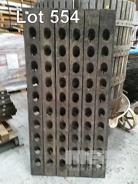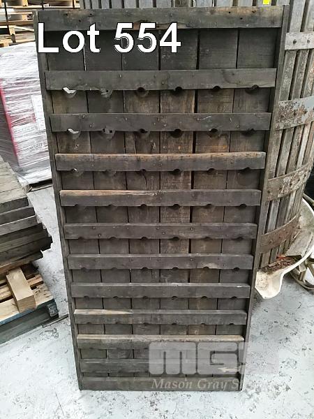 ANTIQUE TRADITIONAL METHODE CHAMPENOISE RIDDLING RACK. 60 BOTTLE PLACES, 730 X 1500 MM (W X H). DARK STAINED TIMBER.
