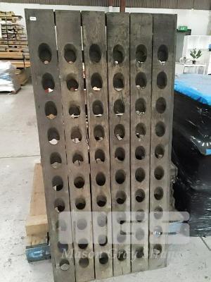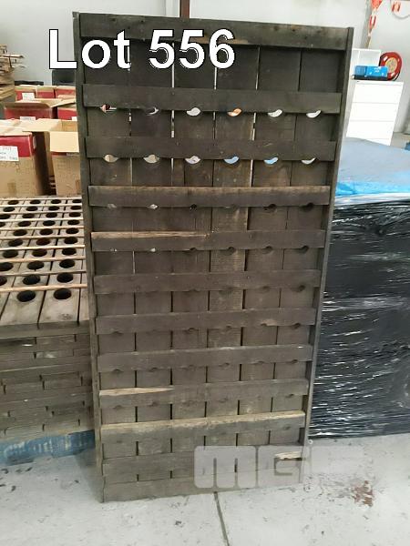 ANTIQUE TRADITIONAL METHODE CHAMPENOISE RIDDLING RACK. 60 BOTTLE PLACES, 730 X 1500 MM (W X H). DARK STAINED TIMBER. * PHOTOGRAPH INDICATIVE *