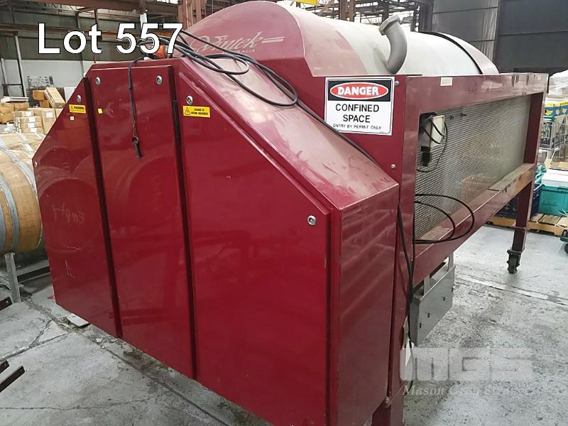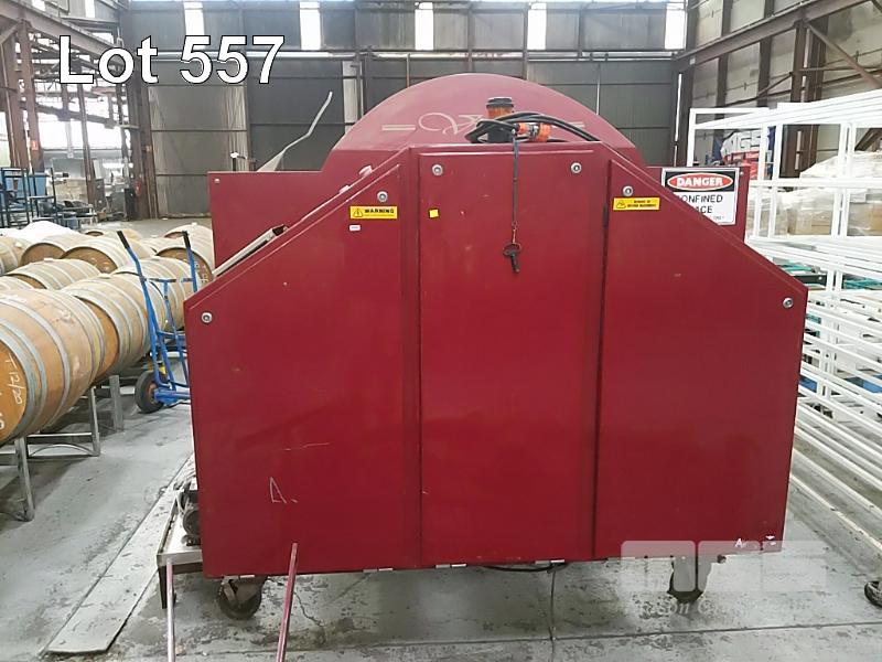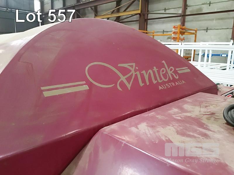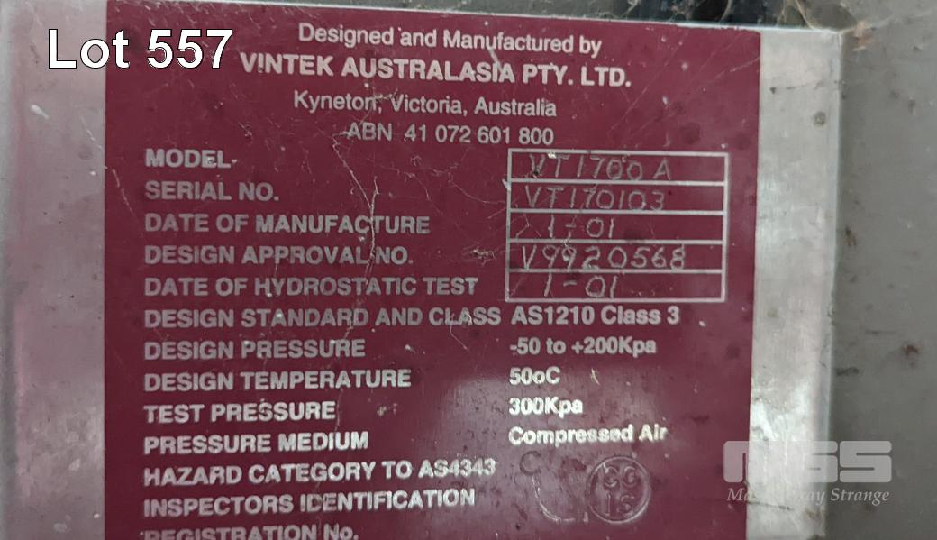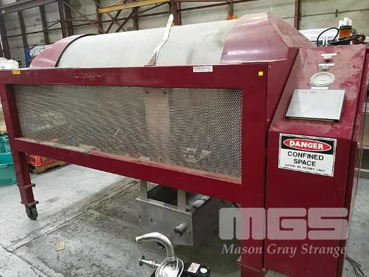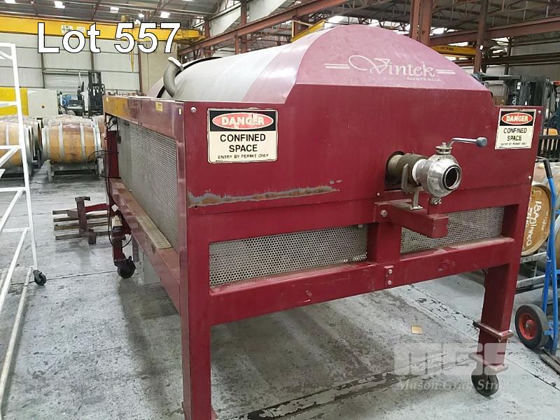 VINTEC AUSTRALIA VT1700A PNEUMATIC MEMBRANE TANK PRESS. WHOLE BUNCH FRUIT CAPACITY 1.7 TONNE. STAINLESS STEEL PRESSURE VESSEL. AUTOMATIC DOOR. AXIAL FEED. PROGRAMMABLE, TOUCH SCREEN CONTROLLER. DIMENSIONS 2,960 X 1710 X 1700MM (L W H). TANK O.D. 1067MM. 15A 240V SINGLE PHASE. STAINLESS STEEL JUICE TRAY, AUTOMATIC PUMP CONTROL. JUICE PUMP AND FITTINGS. BOOKS & INSTRUCTION MANUALS. COVER. 1 X USED MEMBRANE INERT GAS BLANKET DISTRIBUTER ACCESSORY - FRAME MOUNTS ABOVE PRESS DOOR.