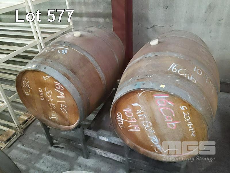 2 X BARRIQUE OAK WINE BARRELS INCLUDING 2 X SOLID SILICONE BUNGS AND CONTENTS OF BARRELS - RED WINE.