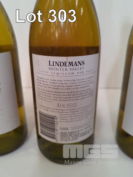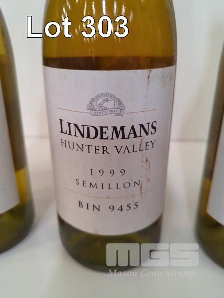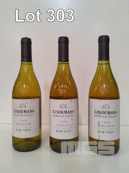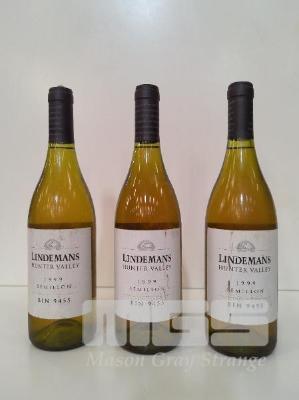 1999 LINDEMANS HUNTER VALLEY SEMILLON - BIN 9455. 3 X 750ML BURGUNDY BOTTLES, UNDER CORK.