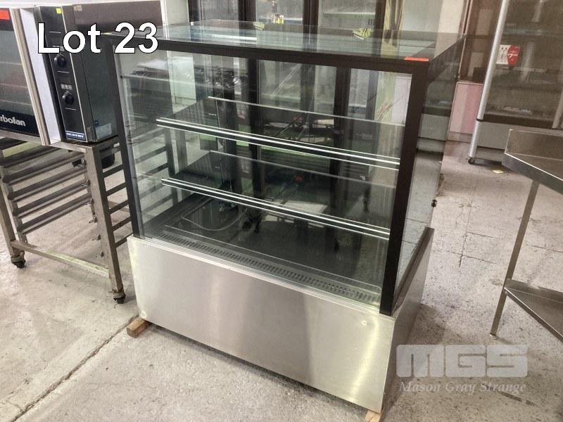 SQUARE GLASS CAKE DISPLAY, FED, SL840V SELF CONTAINED UNIT, 240V (NOTE: NOT ON WHEELS)